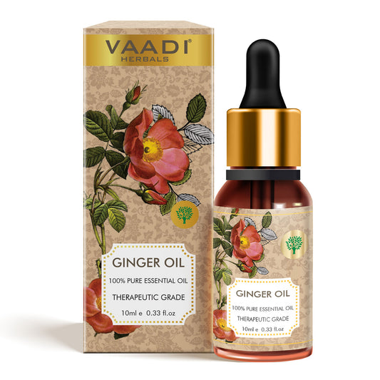 Ginger Essential Oil - Tones Skin, Prevents Hairfall, Soothing Woody Aroma - 100% Pure Therapeutic Grade (10 ml/ 0.33 oz)