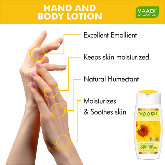 Hand & Body Lotion with Sunflower Extract - Enhances Water Retention in Skin - Keeps Skin Soft (110 ml/4 fl oz)