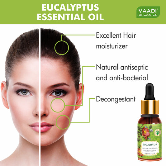 Eucalyptus Essential Oil - Prevents Hairfall, Acne, Soothing & Cool Fragrance - 100% Pure Therapeutic Grade (10 ml/ 0.33 oz)