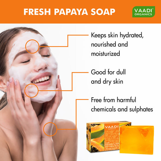 Fresh Papaya Soap - Clears Impurities off Skin - Lightens Skin Tone - Gives a Natural Glow (75 gms / 2.7 oz)