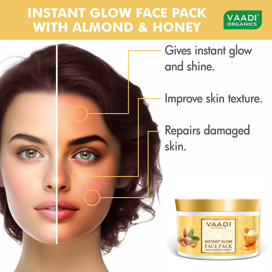 InstaGlow Face Pack with Almond & Honey - Lightens Pigmentation - Gives Instant Glow (120 gms /4.3 oz)