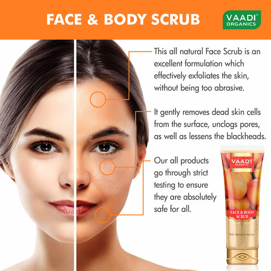 Face & Body Scrub with Walnut & Apricot - Exfoliates & Unclogs Pores - Keeps Skin Youthful ( 2 x 110 gms / 4 oz)