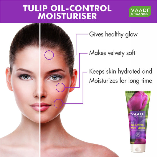 Tulip Oil Control Moisturiser with Green Almond Extract - Keeps Skin Oil Free - Makes Skin Feathery Soft (4 x 60 ml/ 2.1 fl oz)