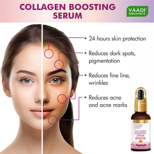 Multipeptide and 24K Gold Extract Collagen Boosting serum with Niacinamide|Radiant & Youthful Skin|Reduces Dark Spots| For All Skin Types| No Parabens, Mineral, Silicon (30 ml / 1.02 fl.oz)