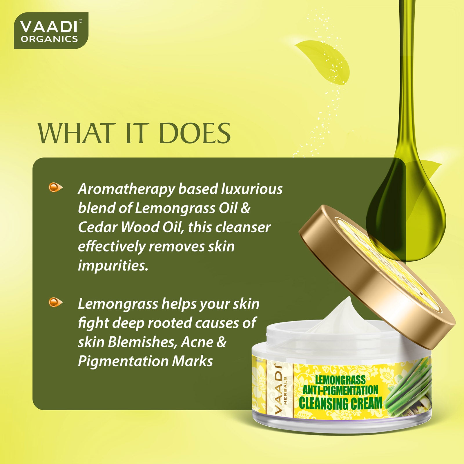 Anti Pigmentation Lemongrass Cleansing Cream - Unclogs Pores - Makes Skin Smooth & Clear (50 gms / 2 oz)