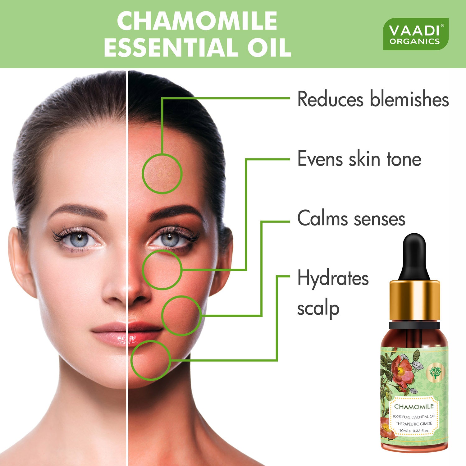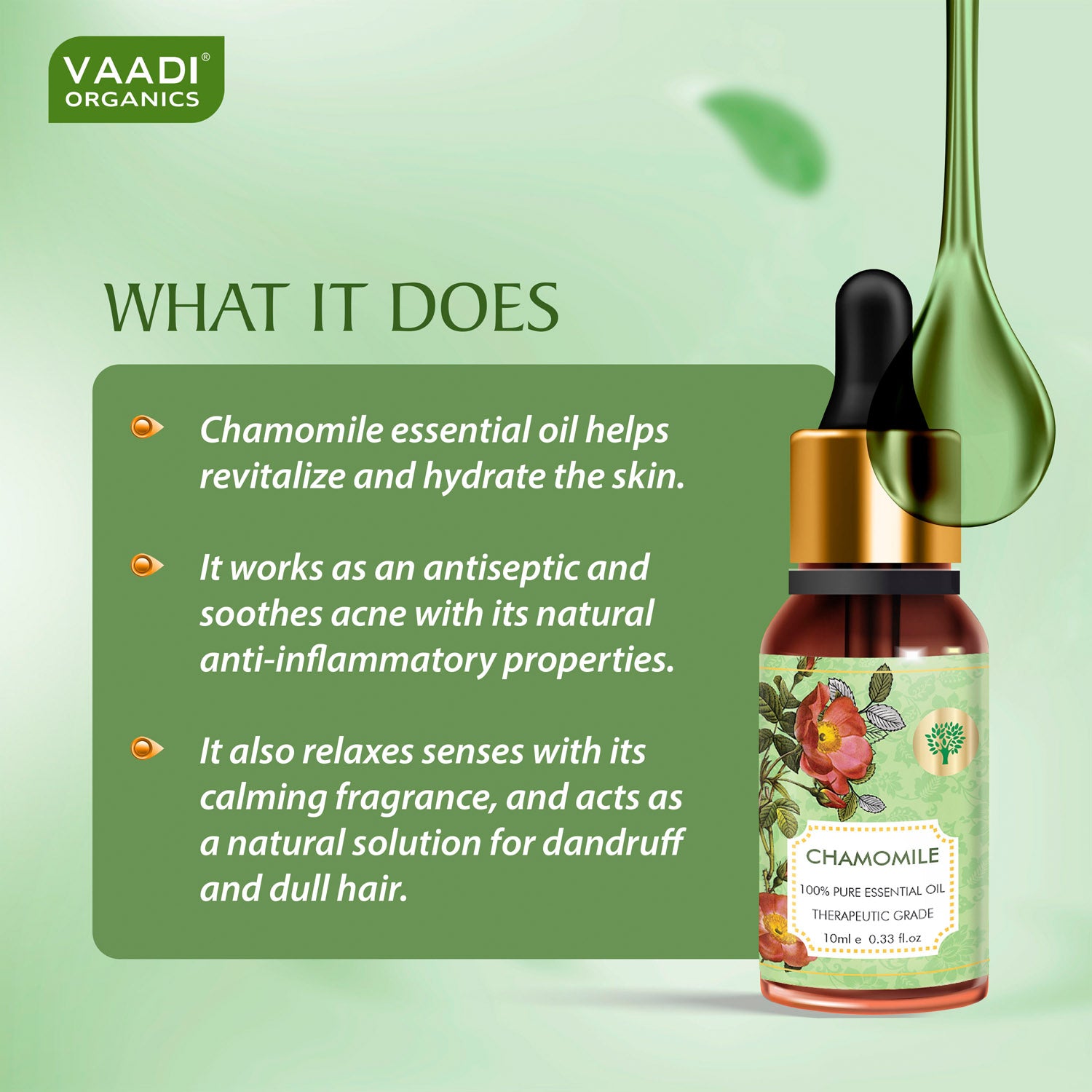 Chamomile Essential Oil - Reduces Blemishes, Evens Skin Tone - Relieves Stress, Better Sleep - 100% Pure Therapeutic Grade (10 ml/ 0.33 oz)