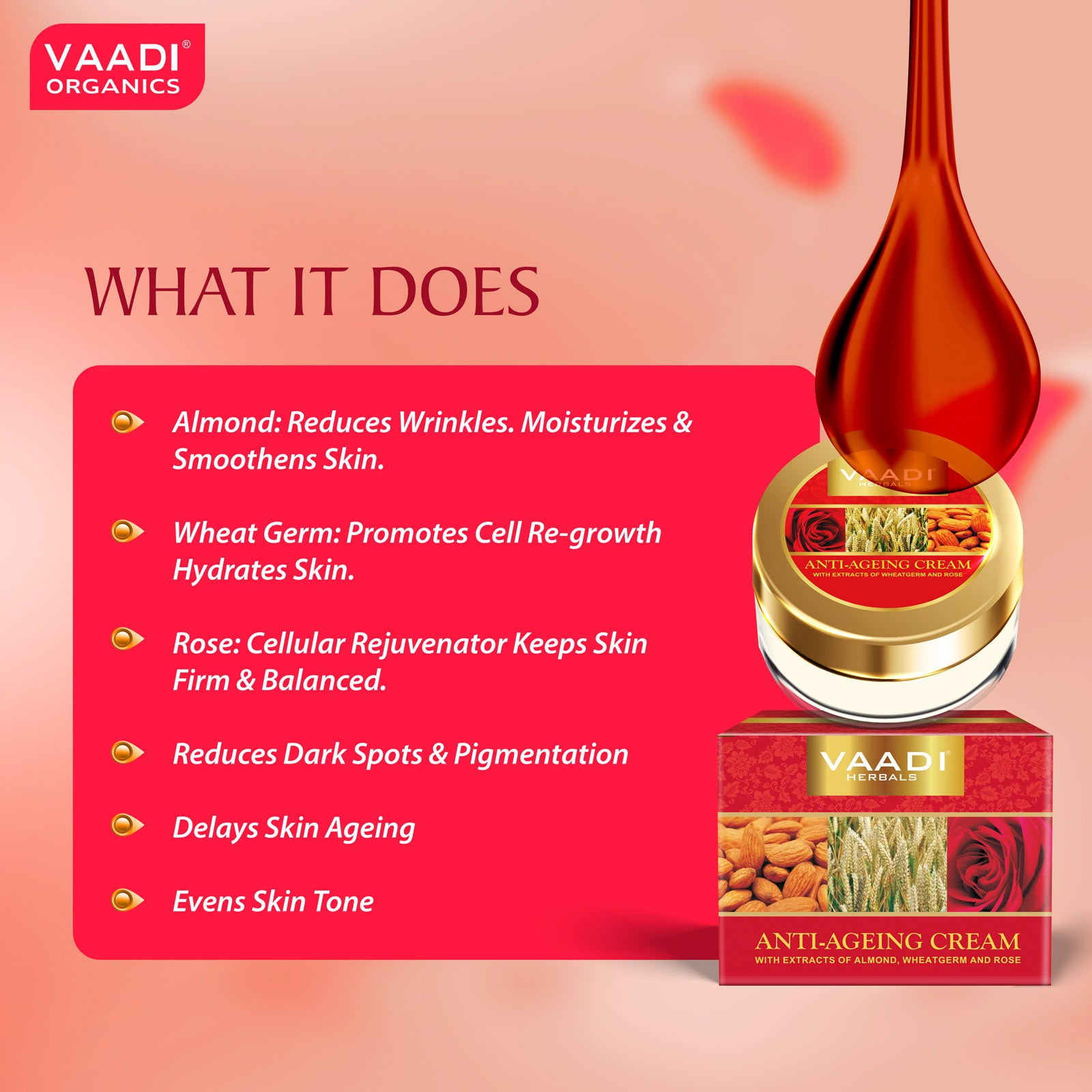 Anti Ageing Cream with Almond, Wheatgerm - Boosts Collagen & Delays Wrinkles - Keeps Skin Soft & Youthful (30 gms / 1.1 oz)