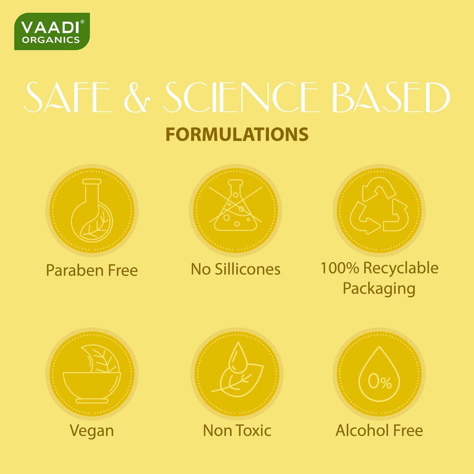 A complete hair and scalp tonic, this complex disinfects the scalp, treats AND prevents dandruff, while nourishing the hair. Lemon’s astringency further tightens the hair follicles, strengthening the roots and preventing hair-fall. And the tea tree extract, in this formulation, moisturizes dry hair, making it shinier and softer