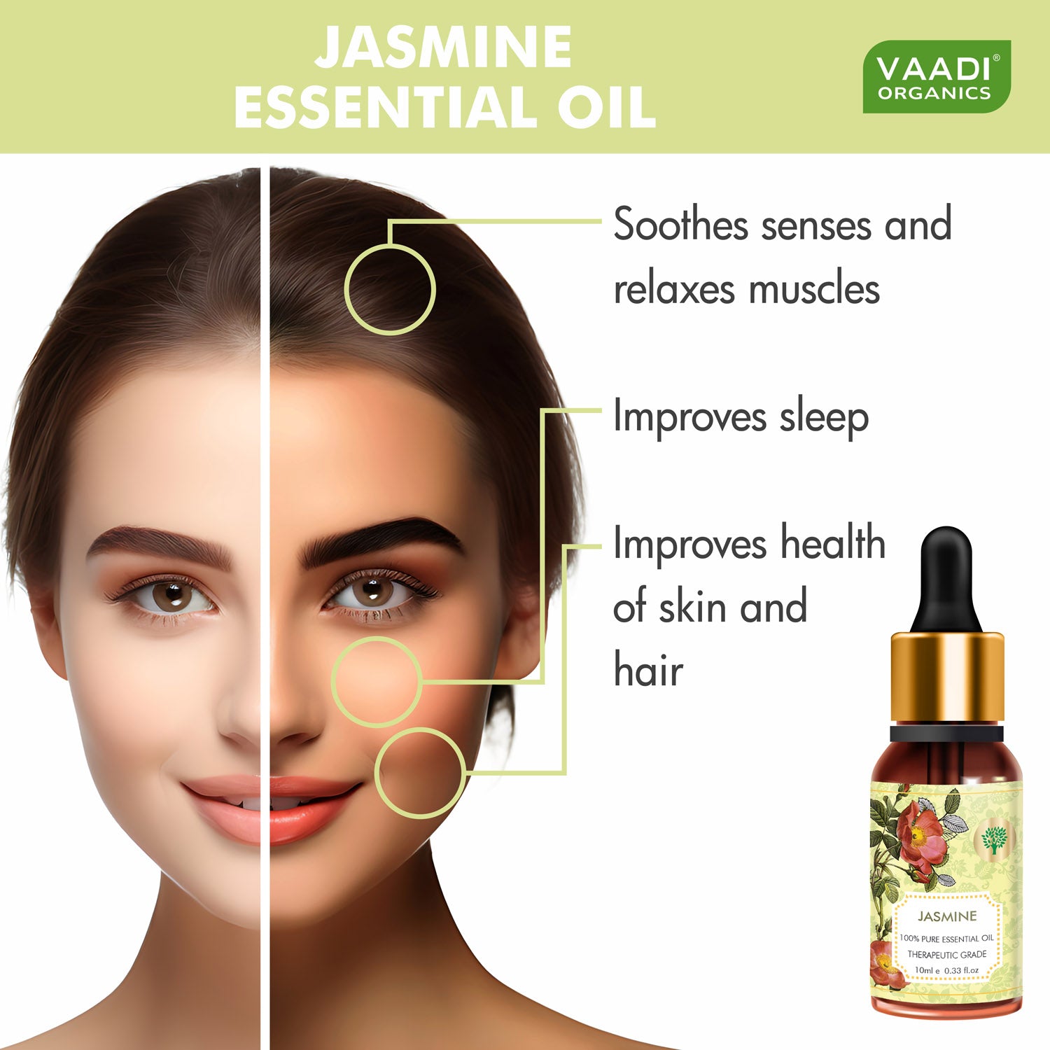 Jasmine Essential Oil - Nourishes Dry & Damaged Hair, Improves Sleep, Uplifts Mood, Reduces Acne & Blemishes
