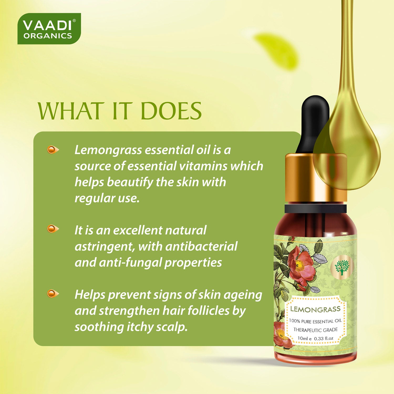 Ingredients : Pure Lemongrass Oil (Cymbopogon Flexuosus Oil)