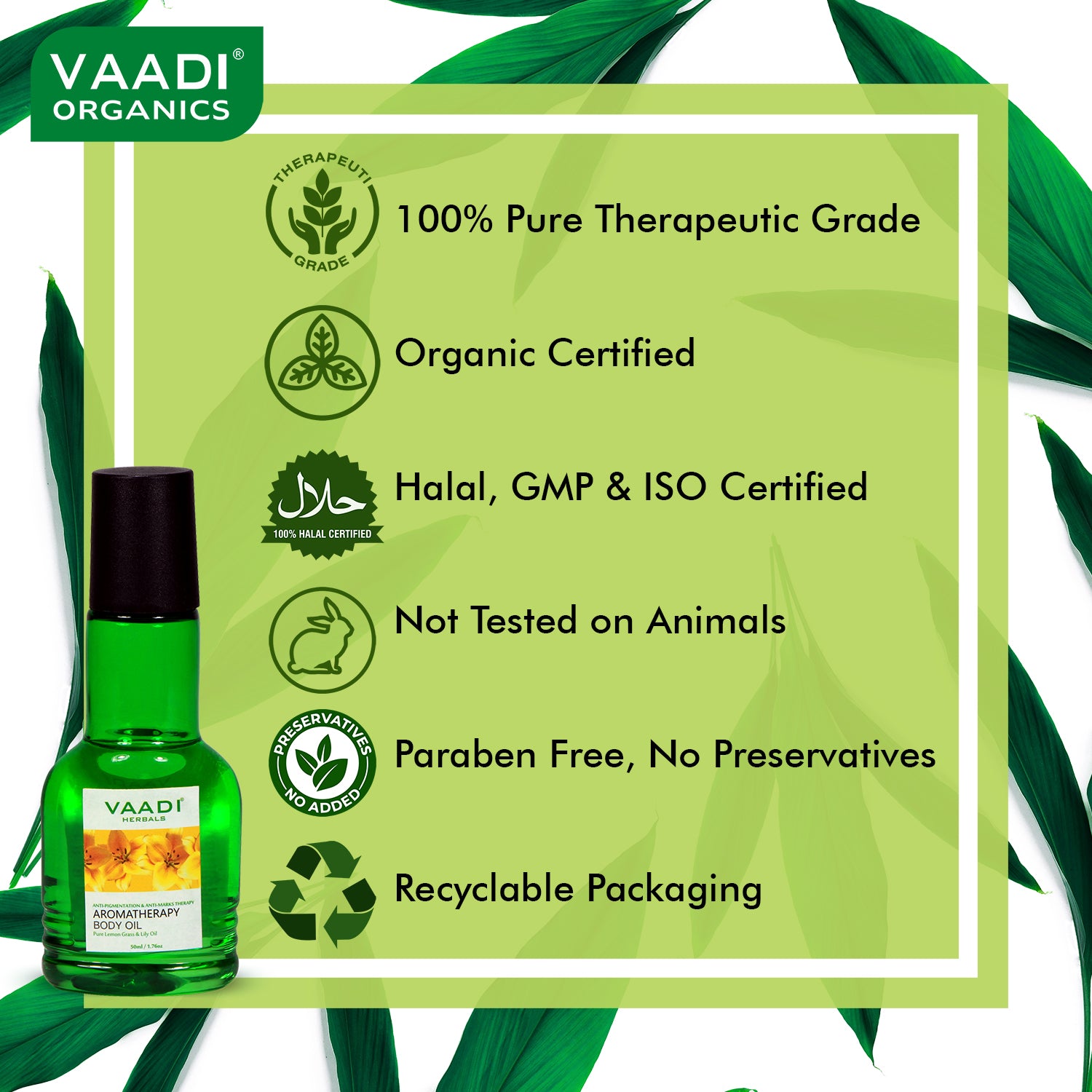 Increases blood circulation & repairs dry & sun damaged skin. Strengthens bones & removes skin blemishes & dark skin patches. Aromatherapy oils reduce stress, headache, cold & cough
