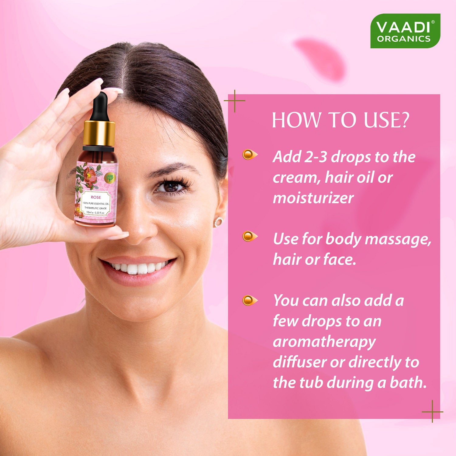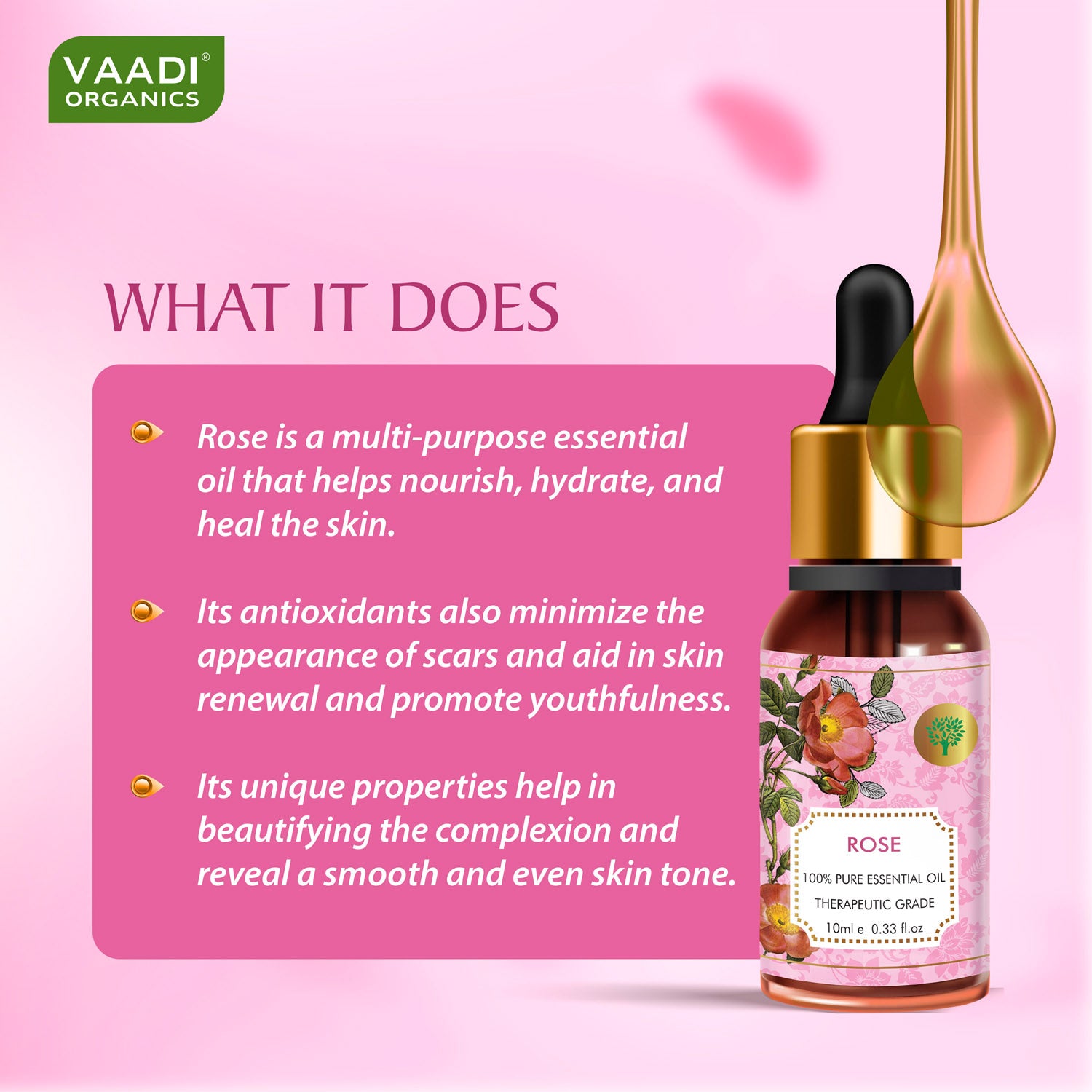 Rose Essential Oil - Improves Complexion, Evens Skin Tone - 100% Pure Therapeutic Grade (10 ml/ 0.33 oz)