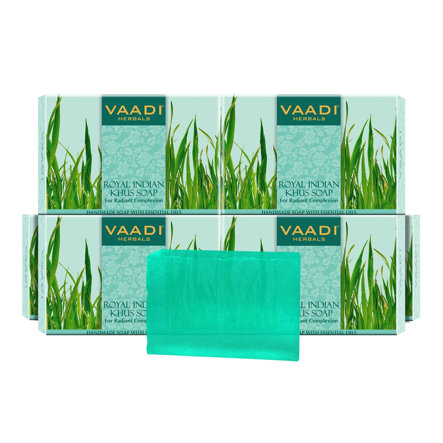 Royal India Khus (Vetiver) Soap with Olive & Soyabean Oil - Rejuvenates Skin - Boosts Cellular Renewal ( 6 x 75 gms / 2.7 oz)