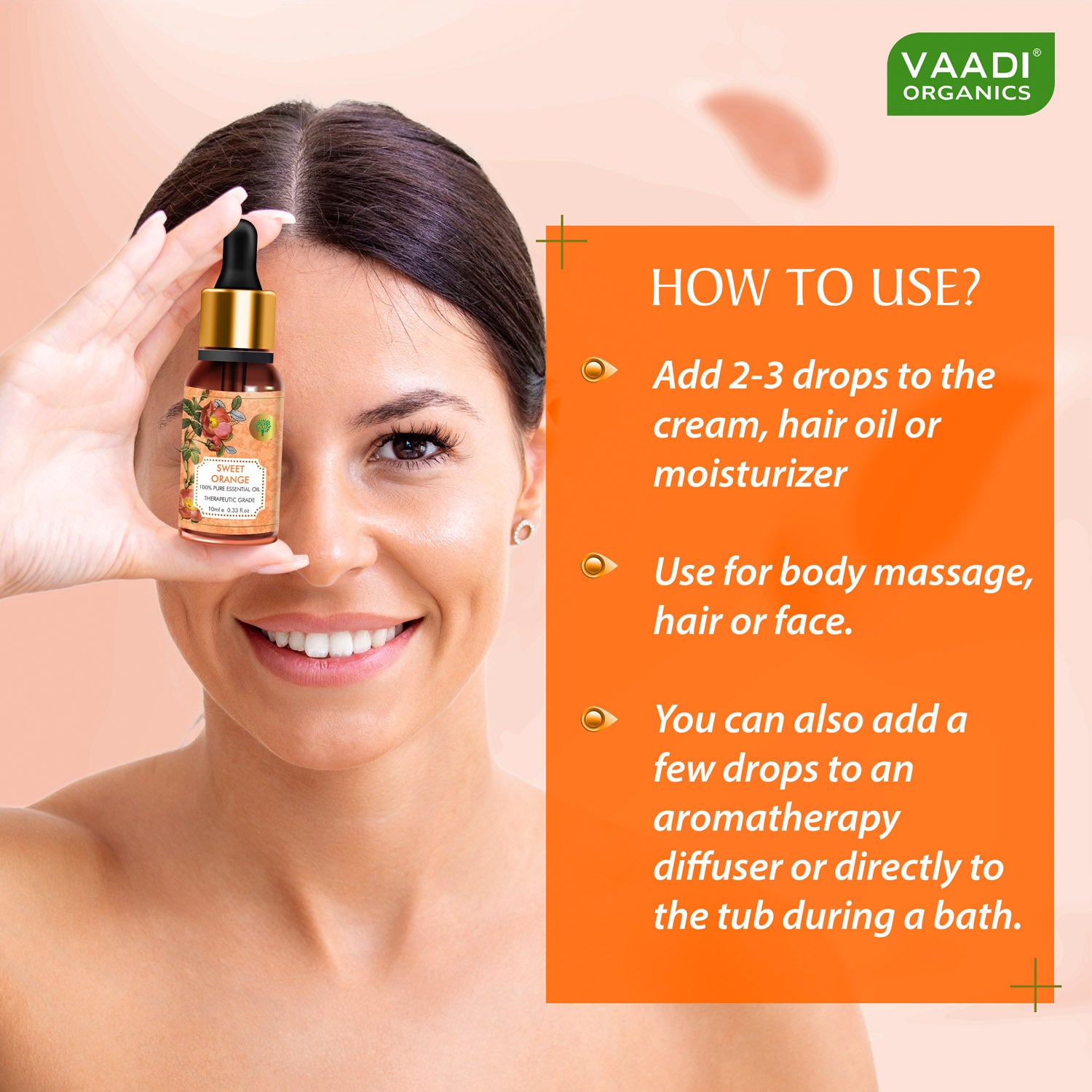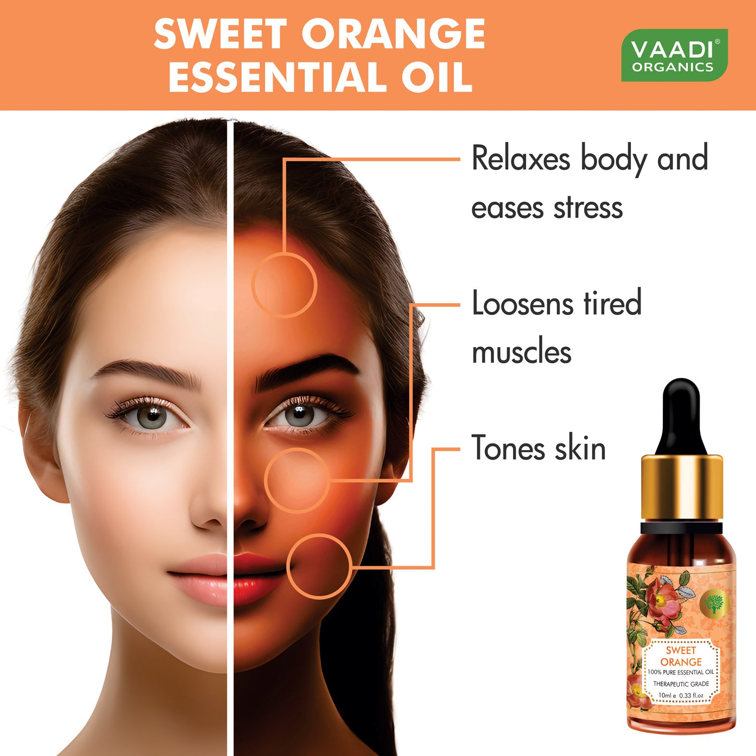 Sweet Orange Essential Oil - Vitamin C Reduces Hairfall, Improves Skin Complexion, Enhances Mood, Loosens Tired Muscles