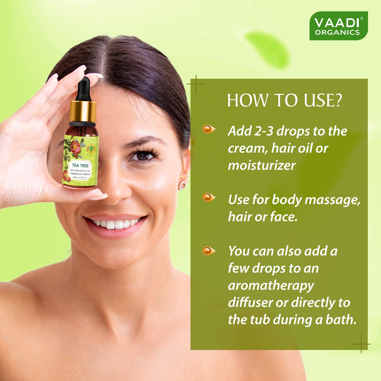 Tea Tree Essential Oil - Reduces Acne, Prevents Dandruff & Hairfall (10 ml/ 0.33 oz)